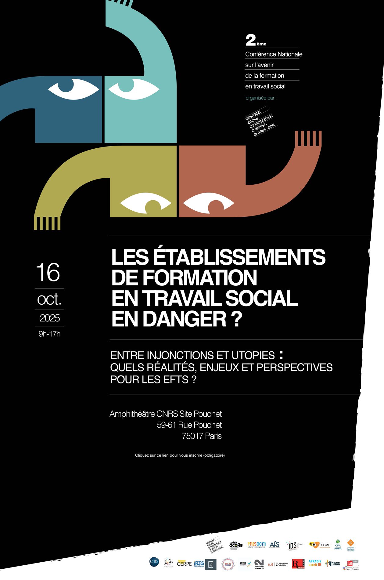 Le Groupement national des hautes écoles et instituts du travail social (GNHEITS), avec ses partenaires, organise le 16 octobre 2025 au CNRS (site Pouchet, Paris) la 2ᵉ Conférence nationale sur l’avenir de la formation en travail social :